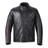 La chaqueta de motociclista de cuero negro Triumph Braddan Sport es una chaqueta de motociclista clásica con cuello de corredor en cuero suave de primera calidad con hombros pespunteados, detalle de logotipo Triumph aplicado en el reverso de cuero en la parte inferior de la espalda y dos franjas deportivas en las mangas. Cuenta con protección D3O extraíble con certificación CE de alto rendimiento en el hombro, el codo y la espalda para una máxima protección sin comprometer la comodidad y la flexibilidad.