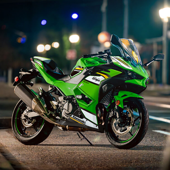La Kawasaki Ninja 500 ABS SE KRT combina un motor bicilíndrico de 451cc con diseño agresivo KRT y tecnología LED. Ofrece potencia equilibrada para ciudad y carretera, con un embrague asistido y deslizante. Su chasis ligero y ergonómico asegura agilidad y comodidad. Incluye frenos ABS para mayor seguridad, pantalla TFT con conectividad smartphone y puerto USB-C. Es la moto deportiva ideal para iniciarse con estilo y rendimiento.