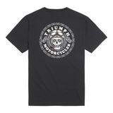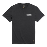 Camiseta de 100 % algodón suave en color negro, con un estampado de Triumph Motorcycles en el lado izquierdo del pecho, un icónico escudo tejido en la cadera izquierda y un diseño de calavera motera de tacto suave en la espalda.