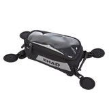 Bolsa de depósito pequeña con elementos reflectantes para mayor seguridad. Compartimento superior con pantalla táctil para Smartphones. Fijación a la moto por medio de imanes.
