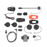 CONTENIDO DE LA CAJA: Adhesivo/velcro para montaje en el casco - Soporte de montaje mediante clip - Altavoz de 40 mm HD- Micrófono boom (cascos jet y modulares) y adhesivo (cascos integrales) - Cable USB type C para carga y datos
