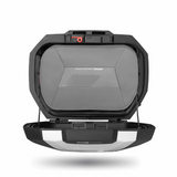 La maleta puede abrirse, cerrarse y retirarse de la moto en cuestión de segundos, así como transportarse con la gran asa retráctil integrada.