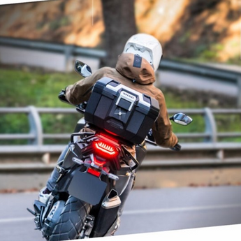 Este baúl moto premium de 41 litros ofrece máxima resistencia con su estructura de polipropileno reforzado y tapa de aluminio anodizado, atrayendo búsquedas "top case aluminio moto". Garantiza impermeabilidad IPX5, capacidad para 2 cascos JET, cierre acero inoxidable y asa integrada para fácil transporte. Diseño 100% Barcelona y compatibilidad llave única son clave. ¡Compre ahora el mejor top case aventura!