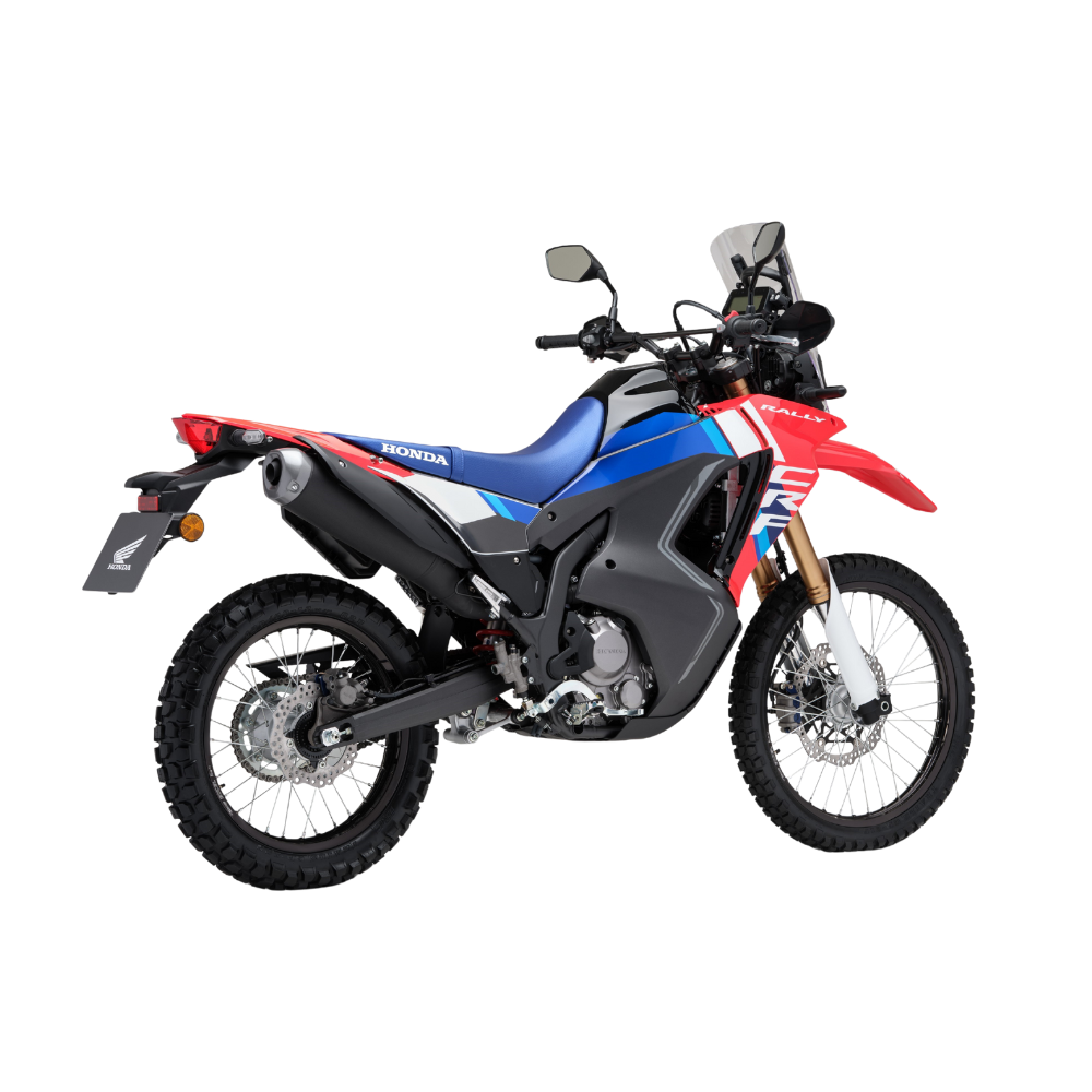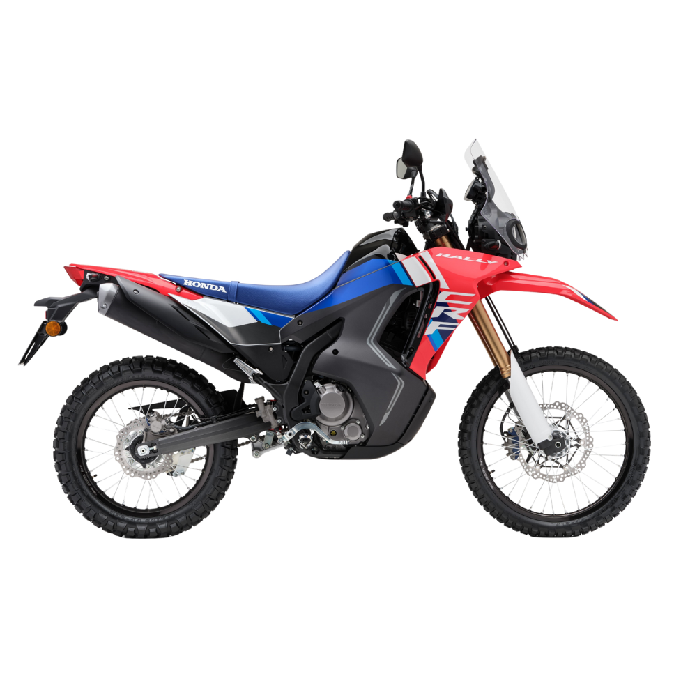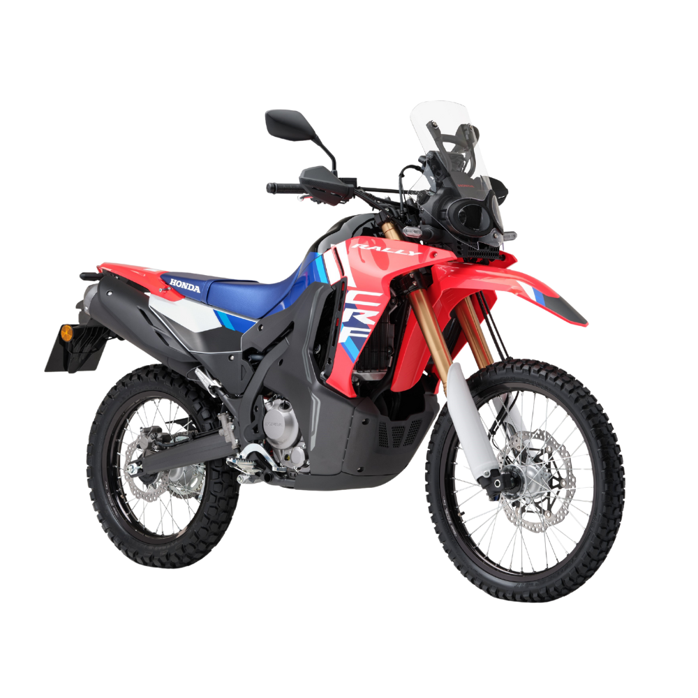 Honda CRF 300 Rally: ¡La aventura te espera! Domina asfalto y tierra con esta moto trail A2 inspirada en el Dakar. Su potente motor 286cc y la suspensión Showa de largo recorrido garantizan un rendimiento excepcional. Ideal para viajes largos y off-road gracias a su gran autonomía y ligereza (153kg). Máximo control con ABS y embrague antirrebote. Compra la CRF 300 Rally y vive la libertad. ¡Tu próxima moto de aventura te espera!
